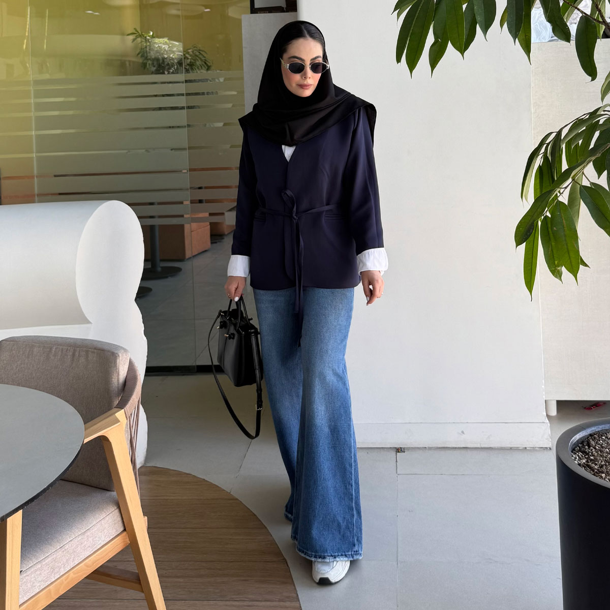 جنس پارچه کرپ جلوی کت لایی کوبی شده